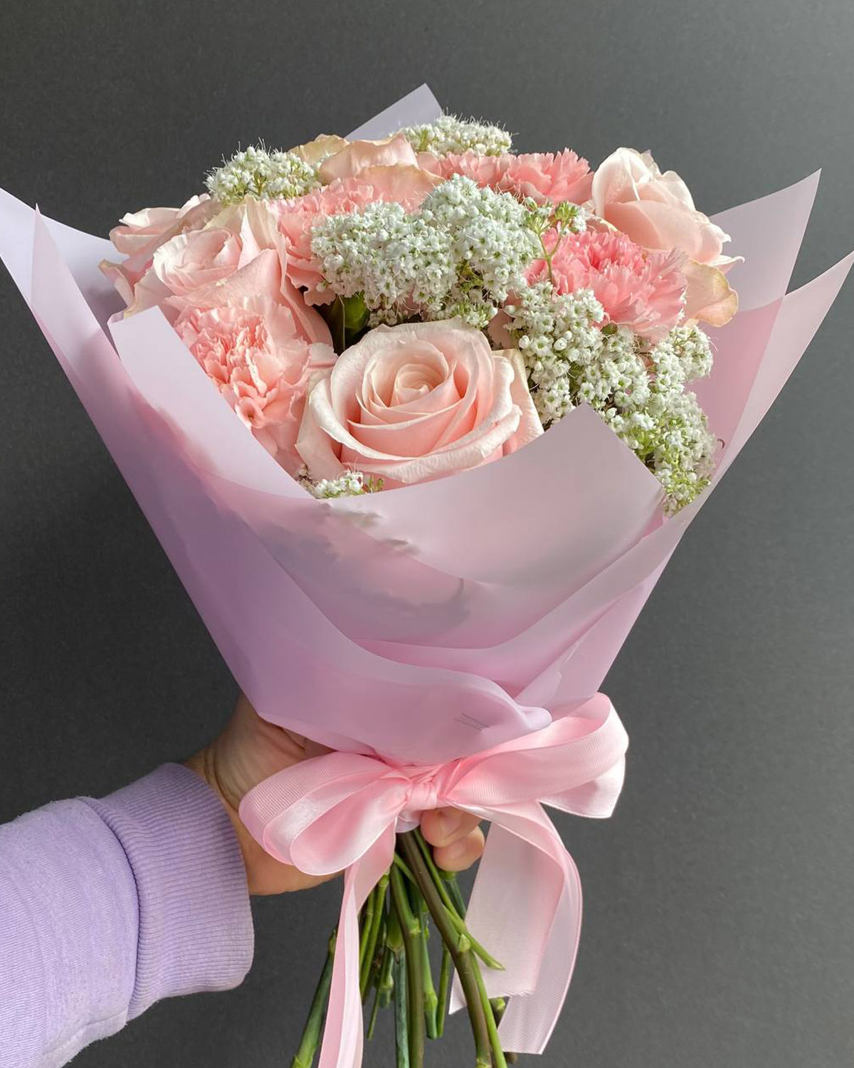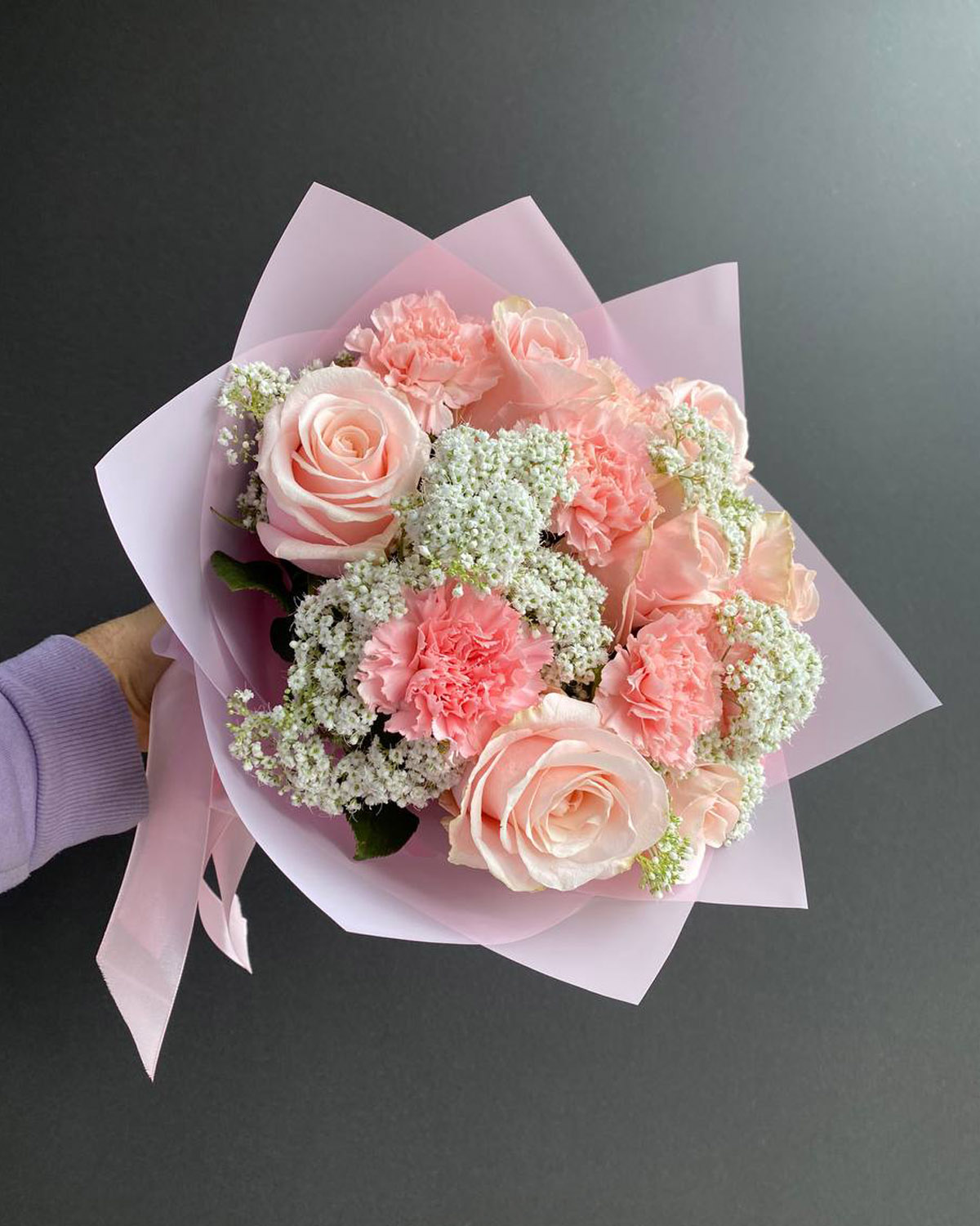 Delikatny bukiet w pastelowych odcieniach to harmonijne połączenie subtelnych kolorów i lekkiej, zwiewnej struktury. Kompozycja zachwyca romantycznym charakterem i elegancją, dzięki czemu doskonale sprawdzi się jako prezent na urodziny, rocznicę lub jako piękny gest pełen czułości i wdzięczności.